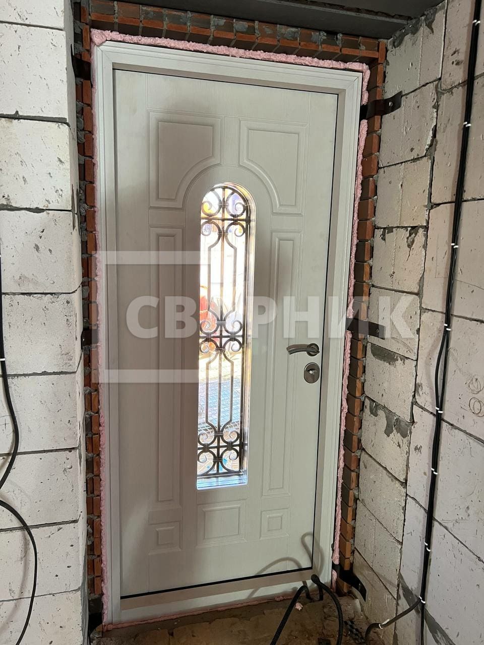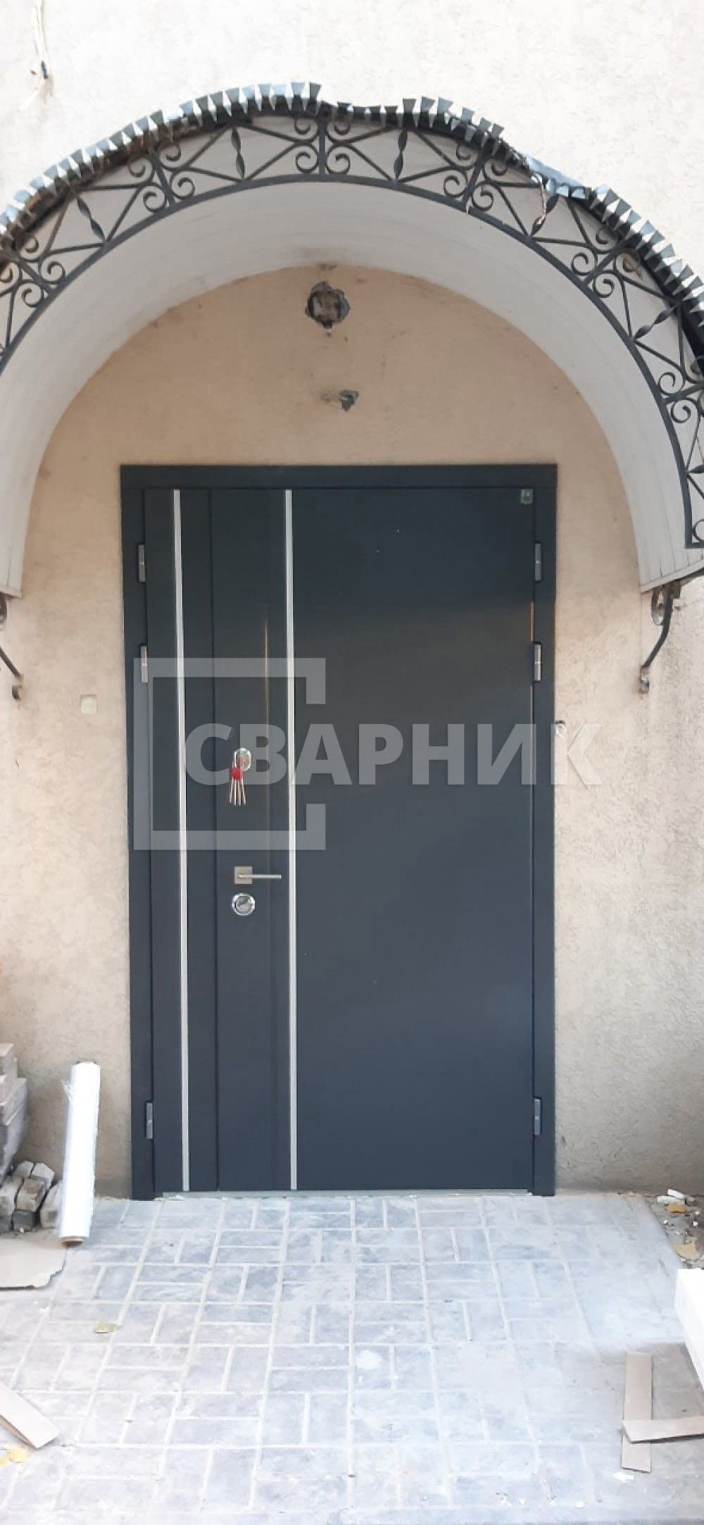 Прочная полуторная входная арочная дверь премиум с окошком и элементами ковки ДВ-517 принадлежит к категории самых востребованных. Многослойная модель с утеплением изготовлена по замерам клиента на технологичном оборудовании с применением передовых технологий. Подходит для монтажа во многих помещениях и административных зданиях.