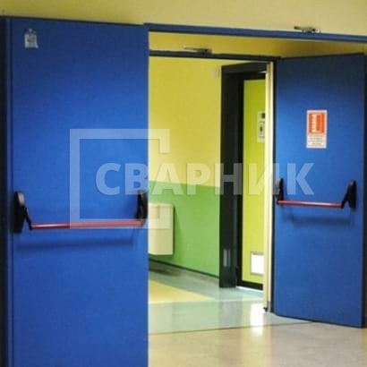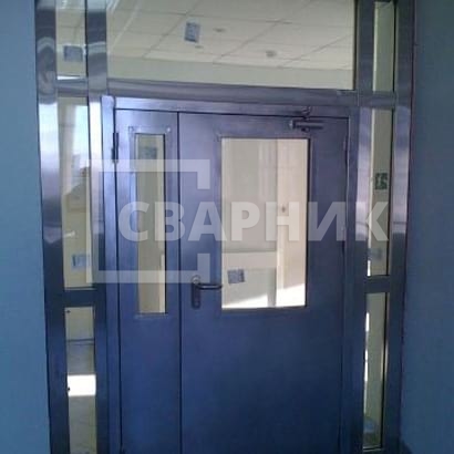 Противопожарная дверь EI-45 эвакуационная двупольная остекленная изготавливается под заказ по вашим размерам из надежного металла толщиной 1,5 мм. На дверь вы получаете все необходимые документы – паспорт, шильдик, сертификат. Срок изготовления одной двери в среднем занимает 2 дня. Окрас происходит методом порошкового напыления.